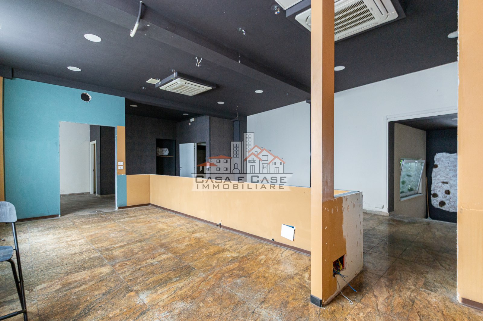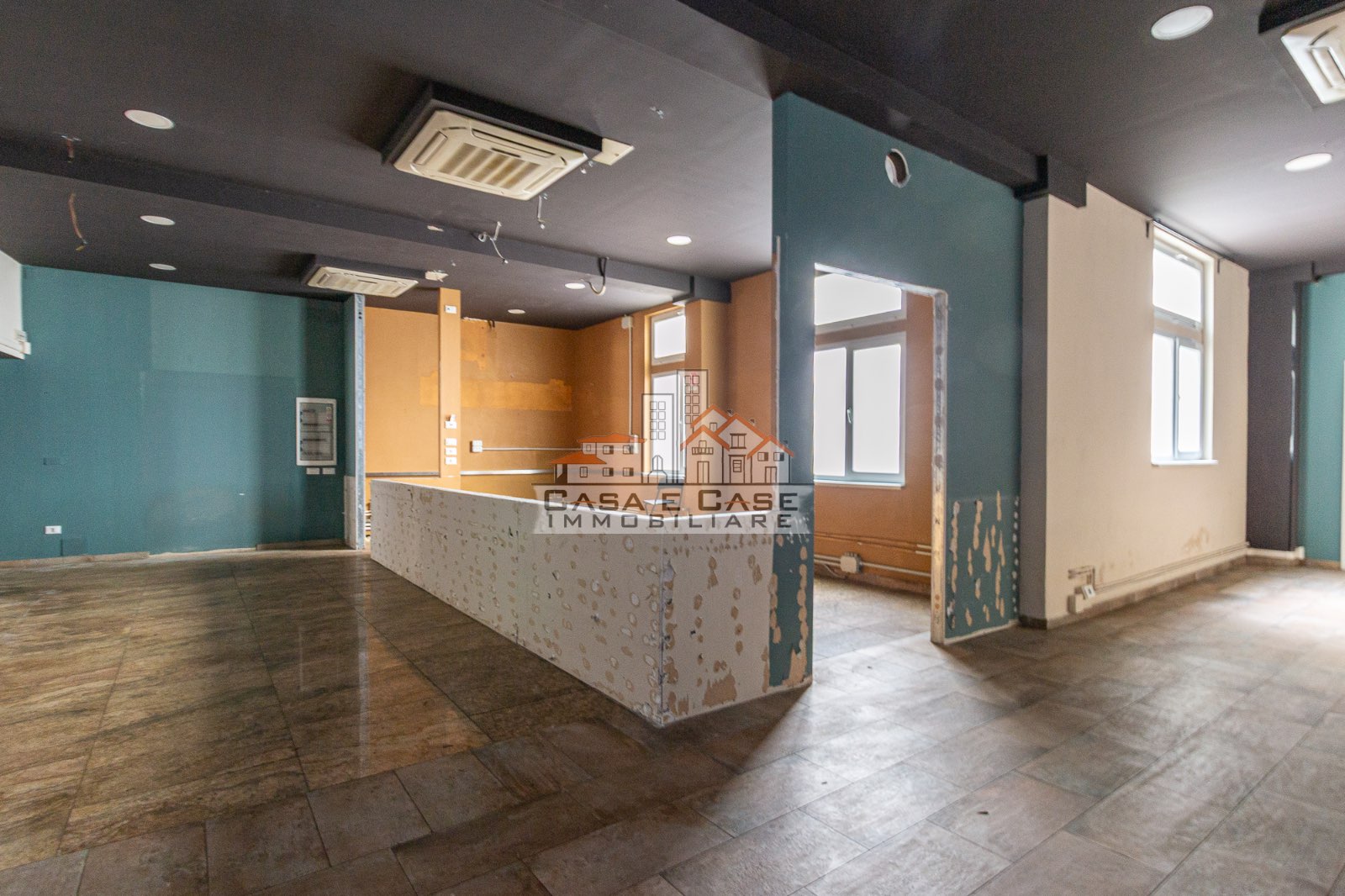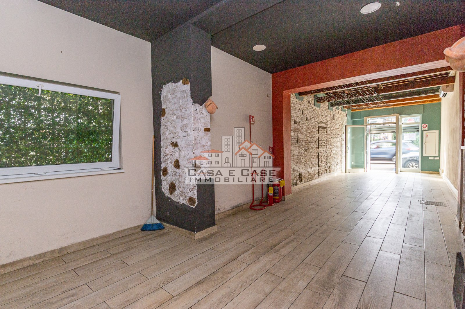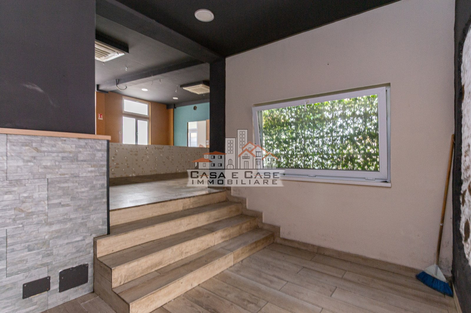 Attraverso alcuni scalini interni si accede al secondo grande spazio, luminoso e arioso grazie alle ampie finestre che garantiscono una piacevole illuminazione naturale durante tutta la giornata. Questa area è già predisposta con impianti per cucina, rendendo il fondo particolarmente adatto ad attività di ristorazione o somministrazione.