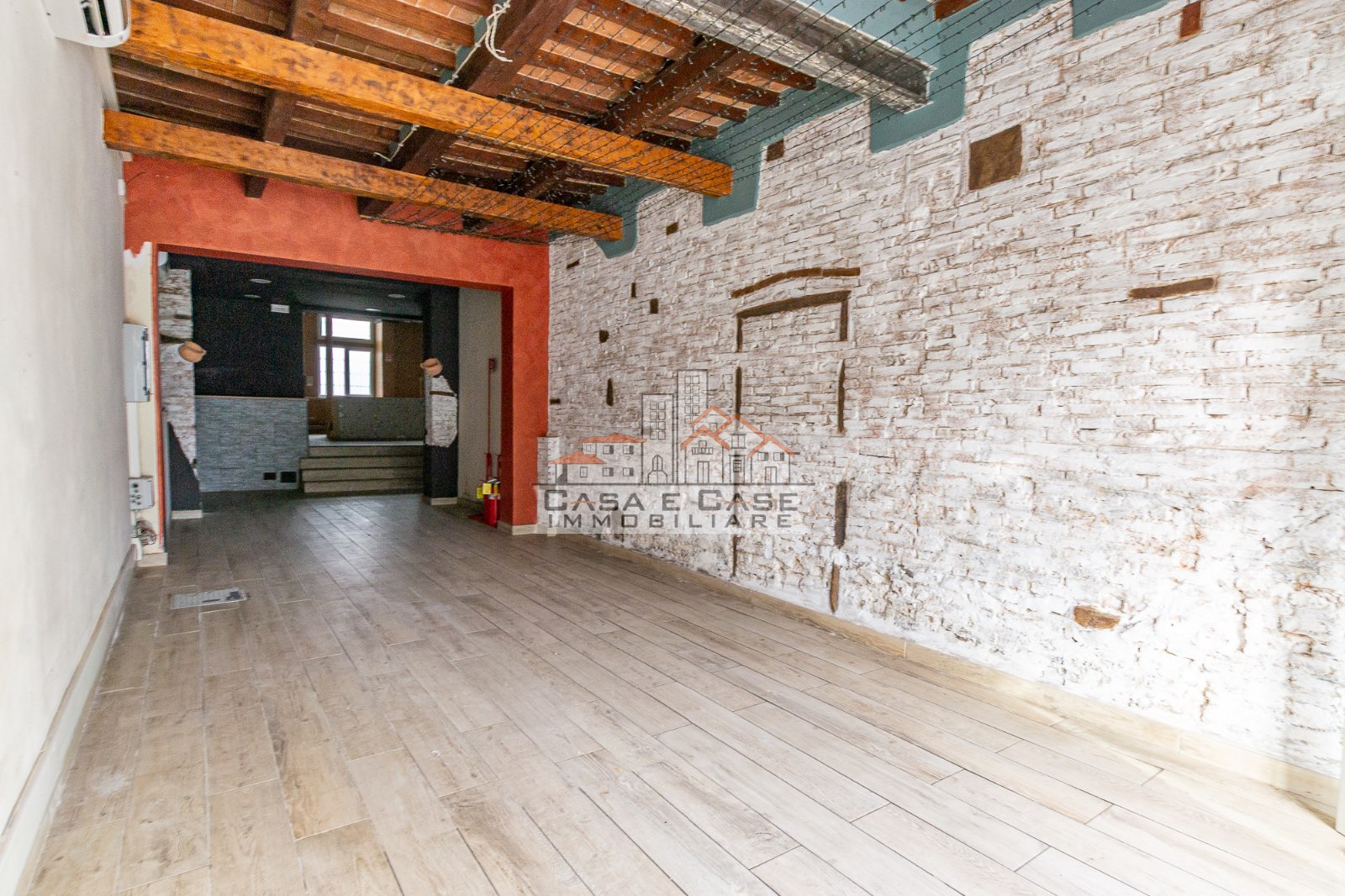 L’ingresso conduce in un primo ampio ambiente di grande impatto, valorizzato da suggestivi dettagli in pietra a vista sulle pareti che donano al locale calore, personalità e un’atmosfera unica, perfetta per accogliere la clientela con stile.