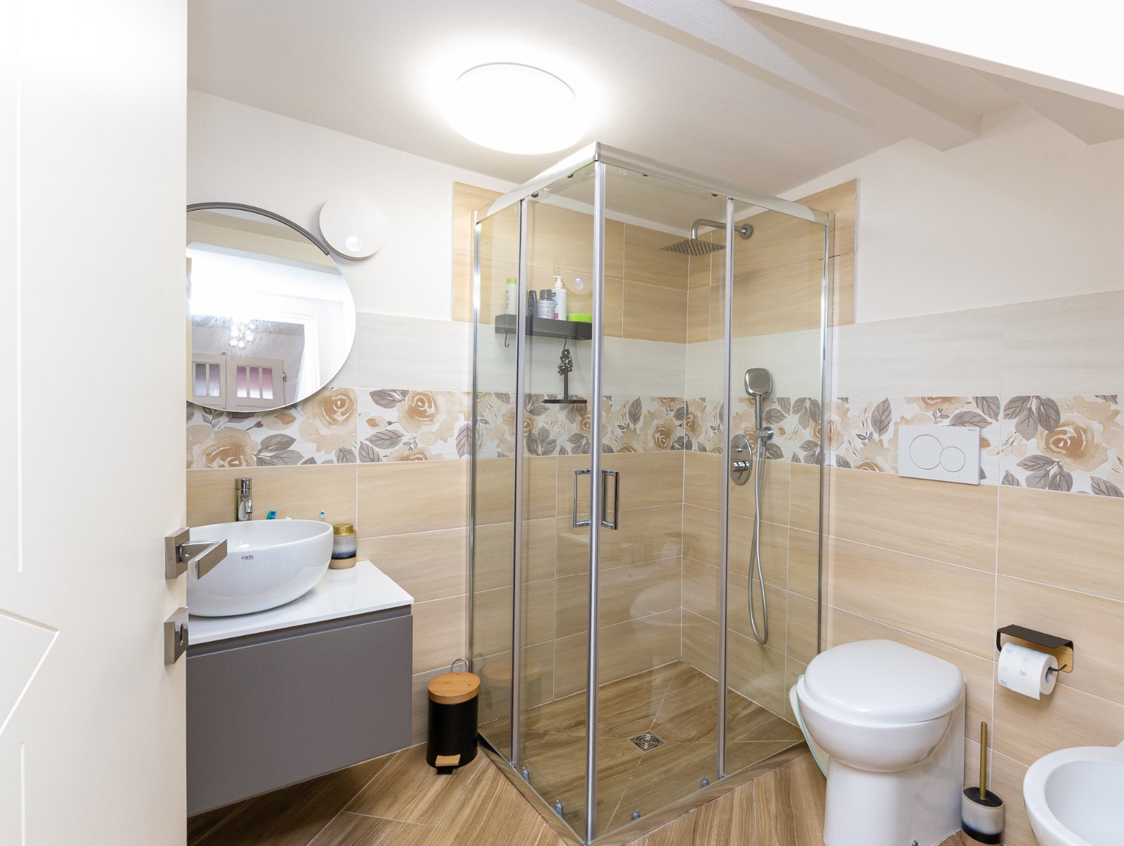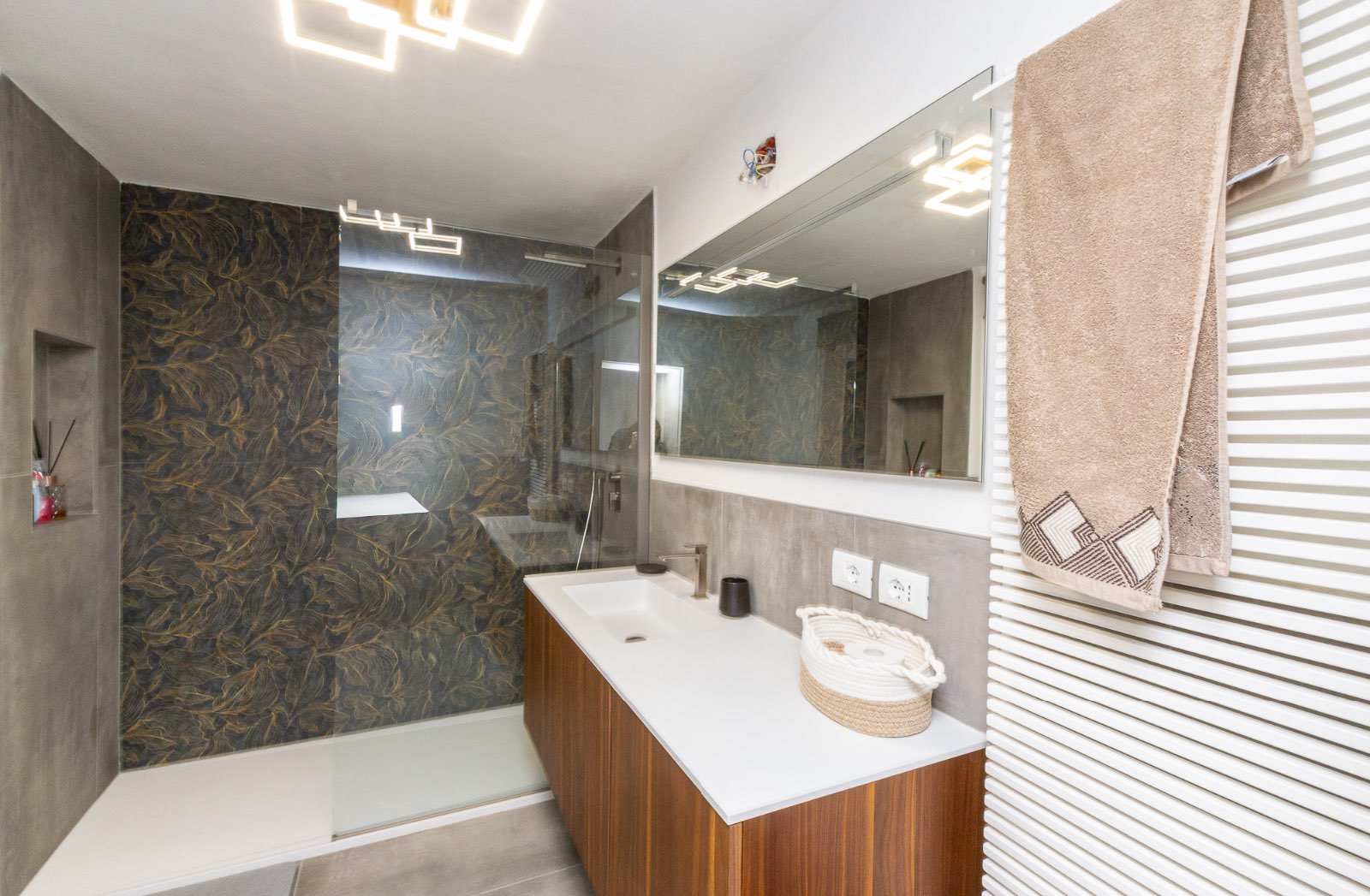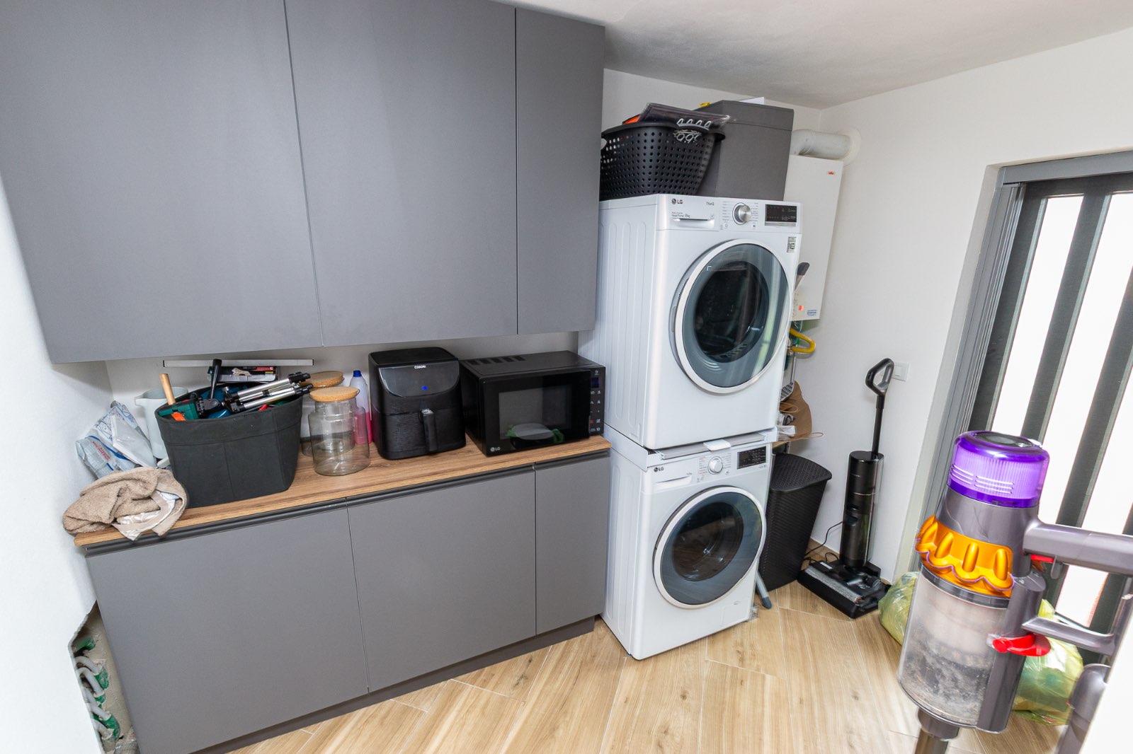 Una spaziosa lavanderia con doppio accesso garantisce massima praticità negli spazi di servizio. La zona notte comprende due grandi camere matrimoniali e due bagni completi, entrambi dotati di ampie docce e rifiniti con materiali di qualità.