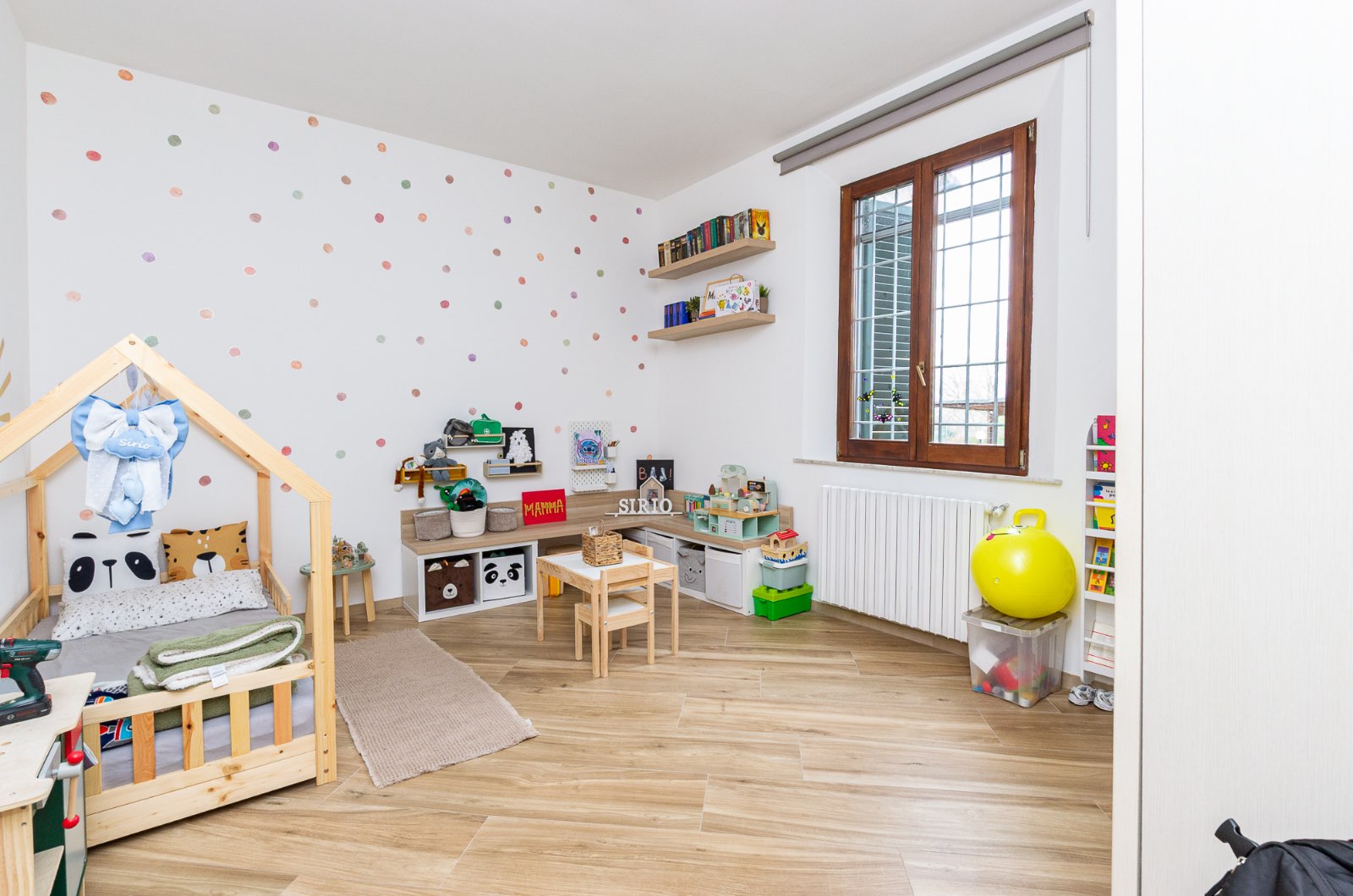 A completamento della proprietà, un ampio giardino in comproprietà con doppio accesso carrabile, oltre a un giardino privato arricchito da una casetta in legno, ideale come deposito, studio o spazio hobby.