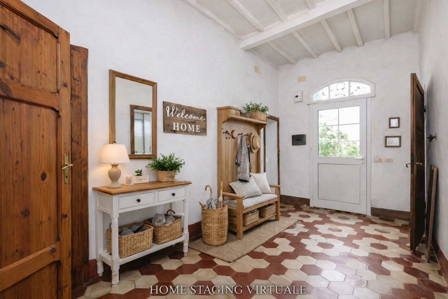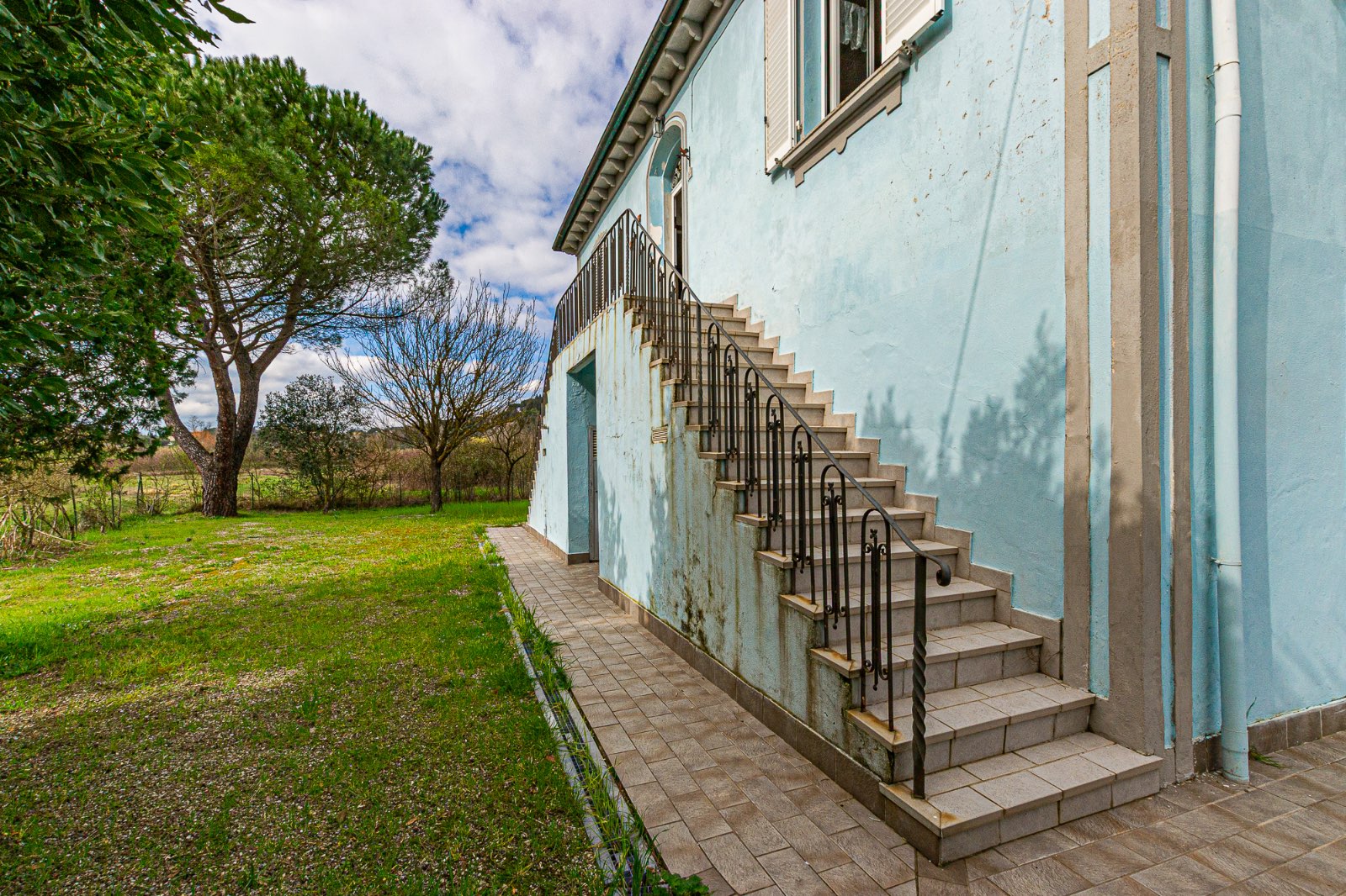 L'accesso avviene tramite una caratteristica scala esterna a doppia rampa, con bellissima ringhiera originale in ferro battuto, recentemente restaurata, elemento distintivo che richiama l'autenticità della tradizione rurale.