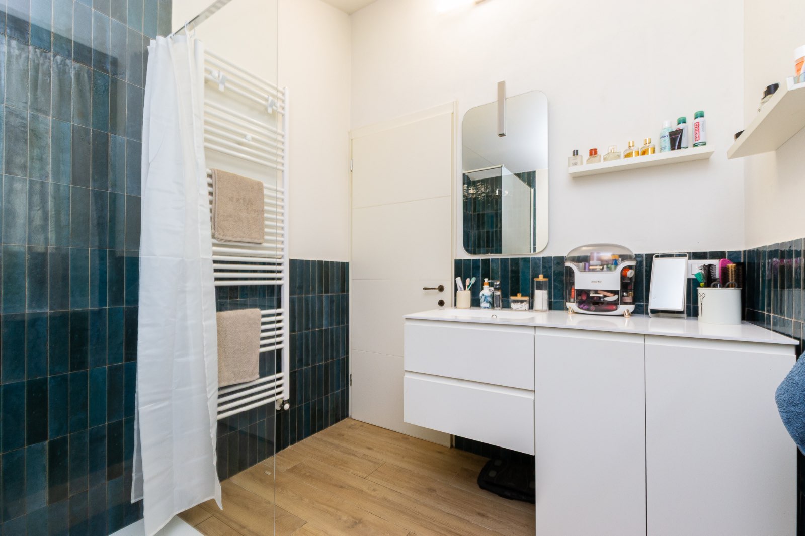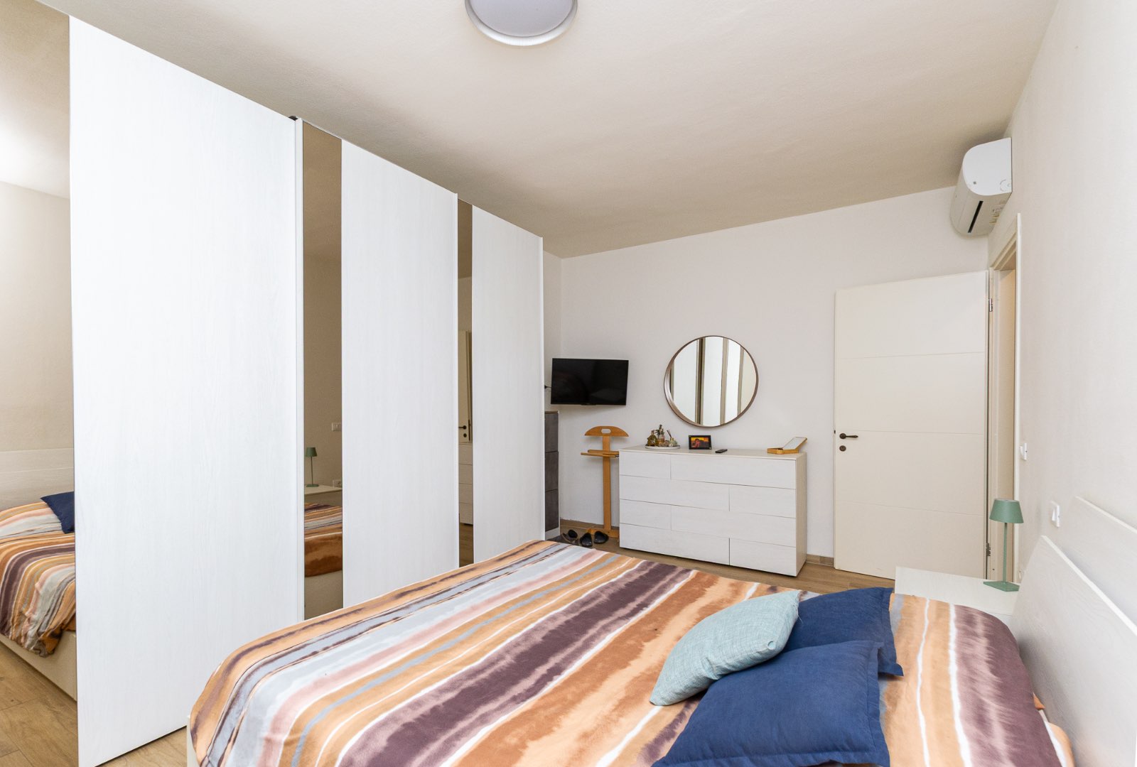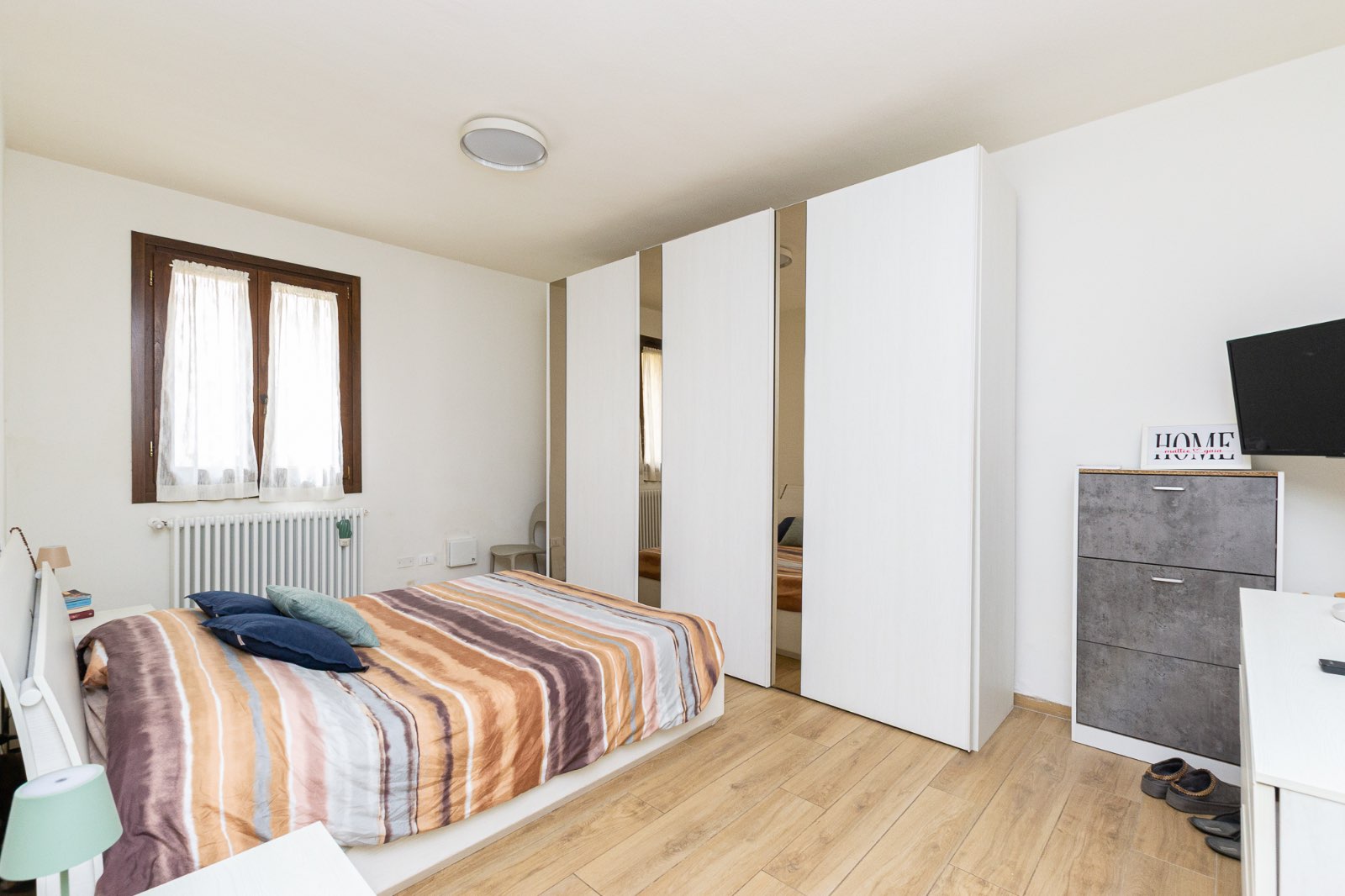 La zona notte offre una spaziosa camera matrimoniale, una camera doppia versatile e un elegante bagno finestrato con ampia doccia WALK-IN.
