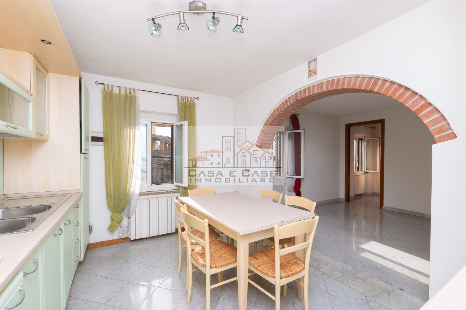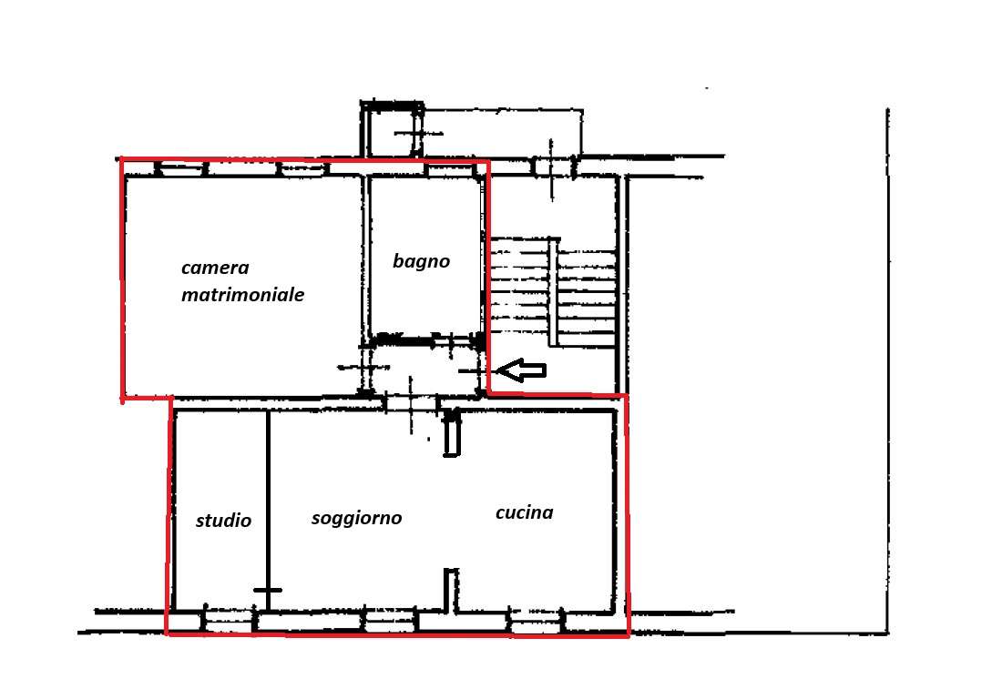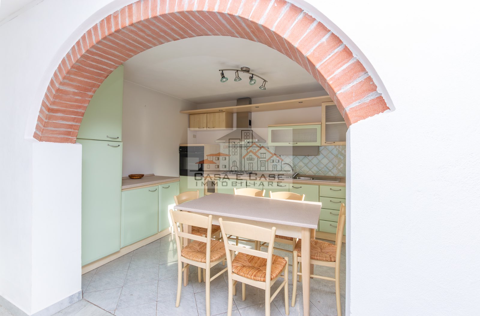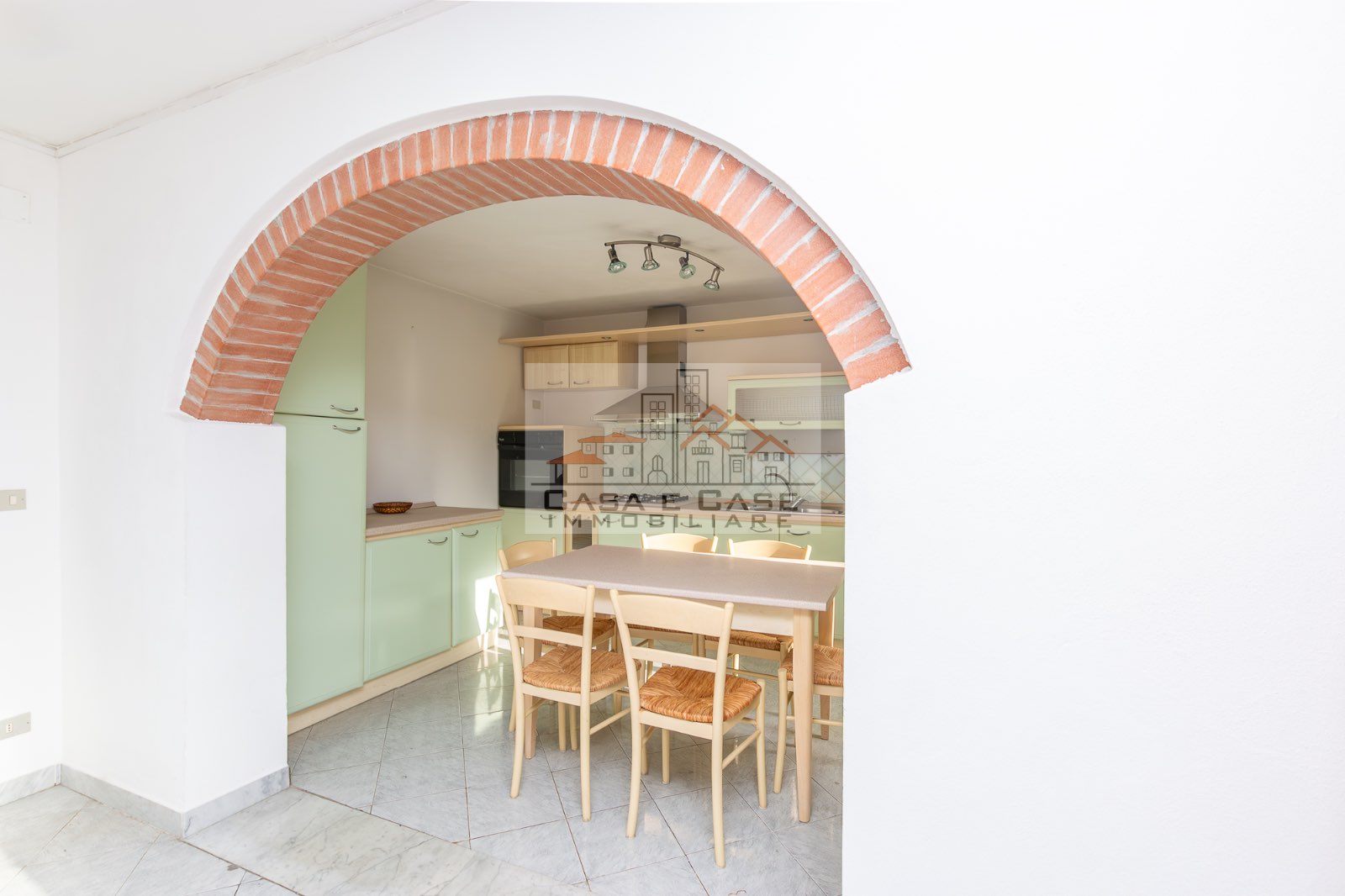 Il grazioso appartamento è composto da ingresso, luminosa zona giorno con cucina abitabile sepata da arco in muratura, ampia camera matrimoniale, cameretta/studio e spazioso bagno con doccia e finestra.