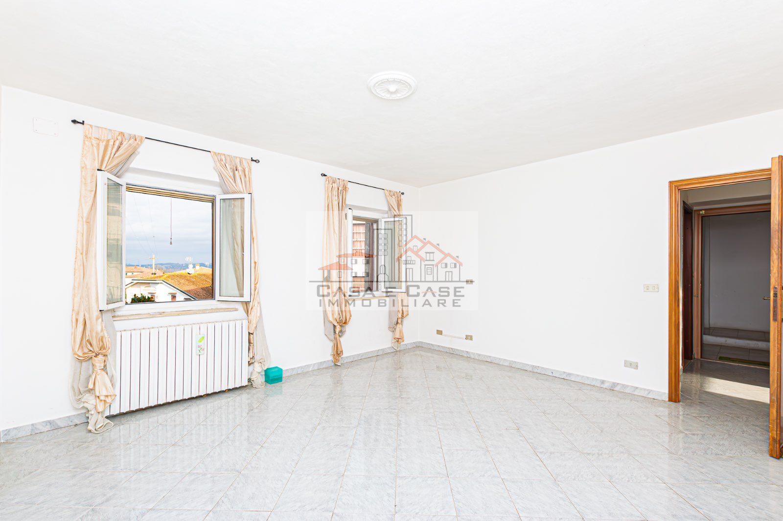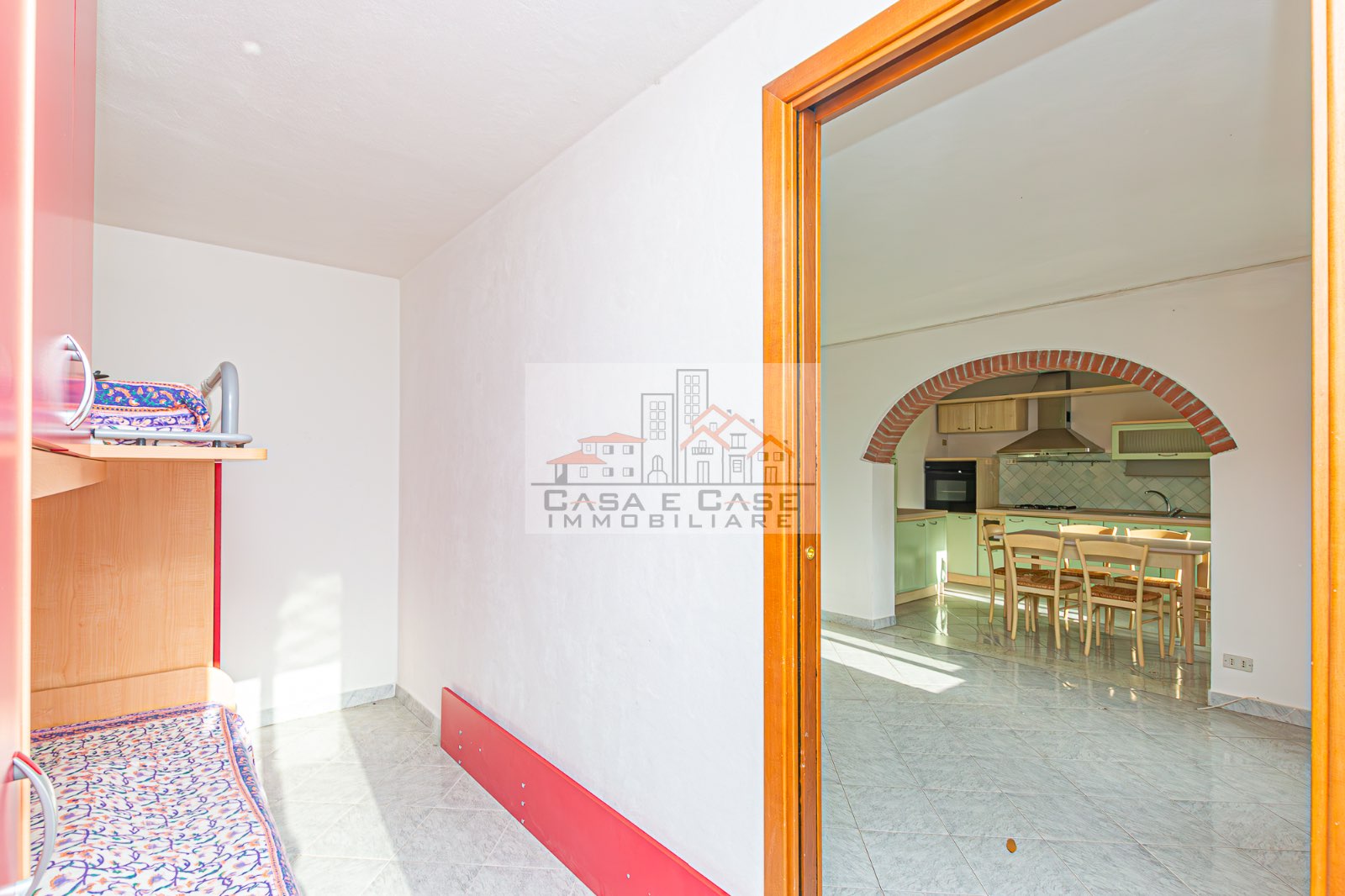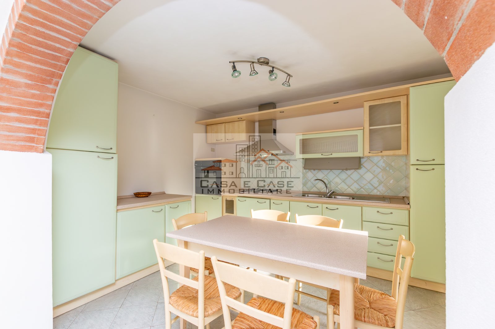 Il grazioso appartamento è composto da ingresso, luminosa zona giorno con cucina abitabile sepata da arco in muratura, ampia camera matrimoniale, cameretta/studio e spazioso bagno con doccia e finestra.