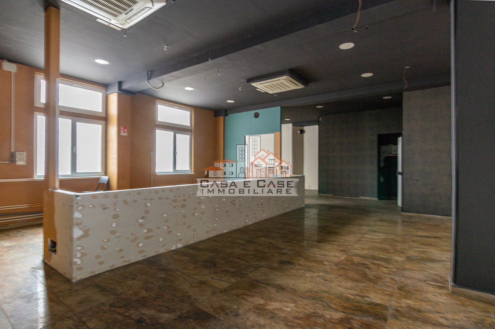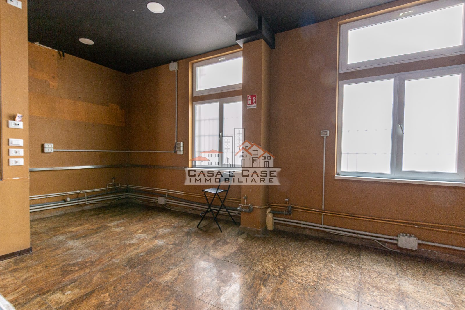 Attraverso alcuni scalini interni si accede al secondo grande spazio, luminoso e arioso grazie alle ampie finestre che garantiscono una piacevole illuminazione naturale durante tutta la giornata. Questa area è già predisposta con impianti per cucina, rendendo il fondo particolarmente adatto ad attività di ristorazione o somministrazione.