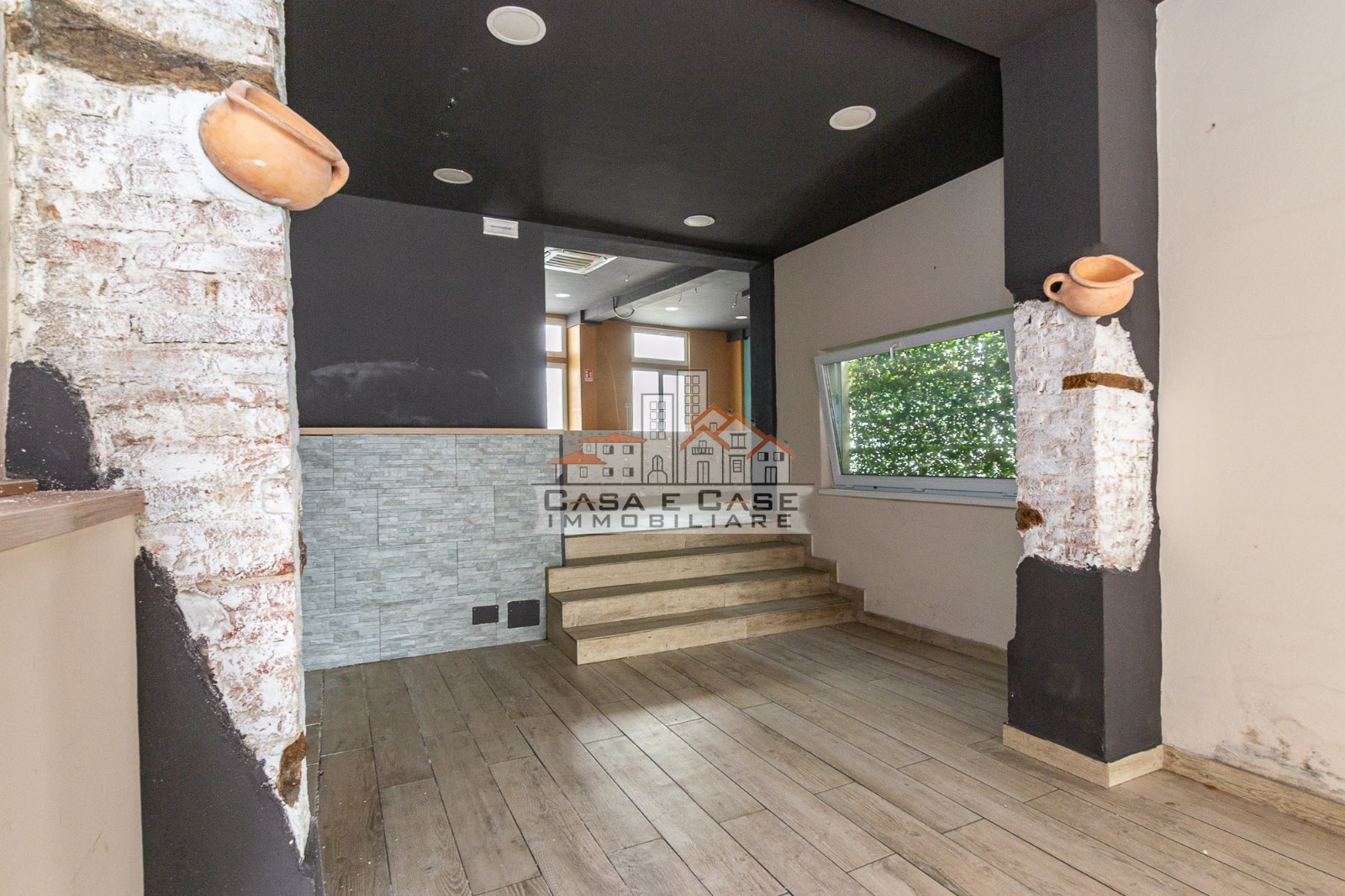 L’ingresso conduce in un primo ampio ambiente di grande impatto, valorizzato da suggestivi dettagli in pietra a vista sulle pareti che donano al locale calore, personalità e un’atmosfera unica, perfetta per accogliere la clientela con stile.