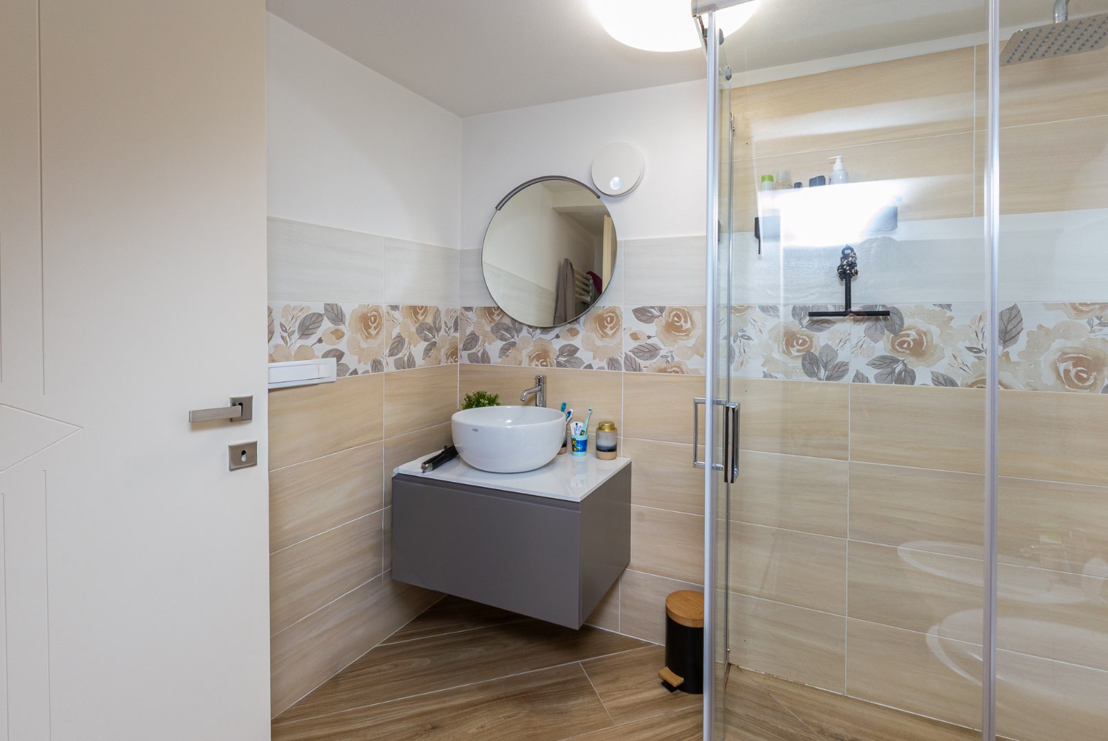 Una spaziosa lavanderia con doppio accesso garantisce massima praticità negli spazi di servizio. La zona notte comprende due grandi camere matrimoniali e due bagni completi, entrambi dotati di ampie docce e rifiniti con materiali di qualità.