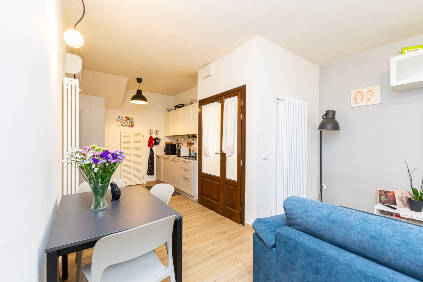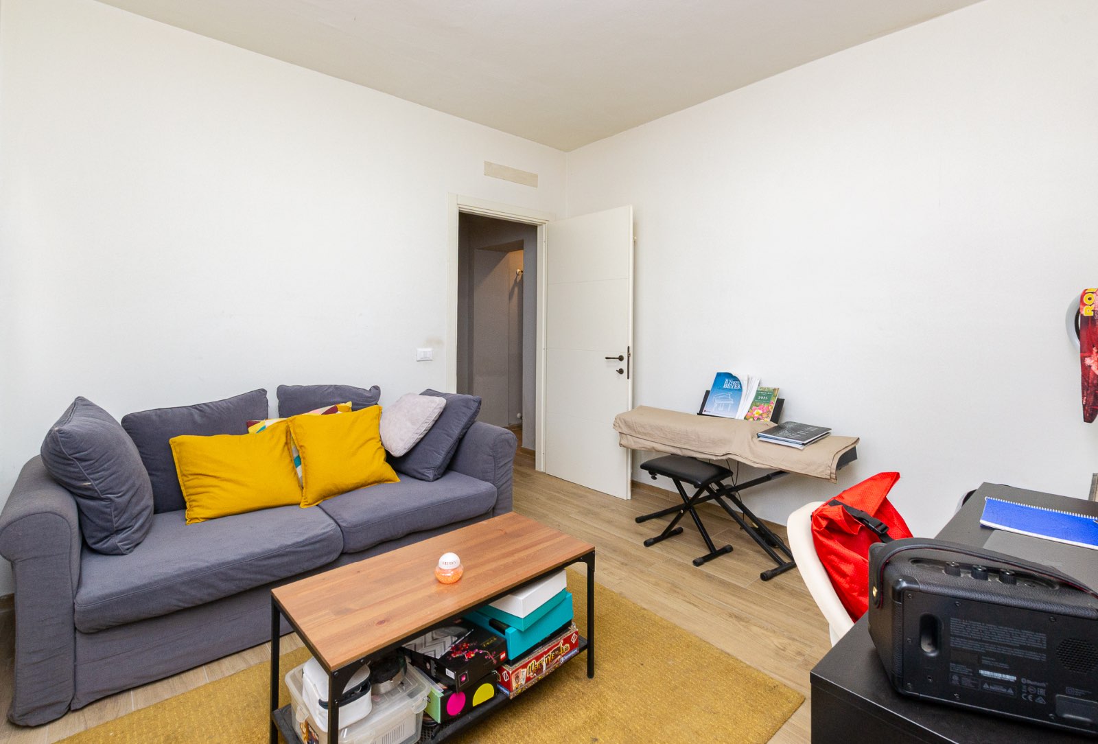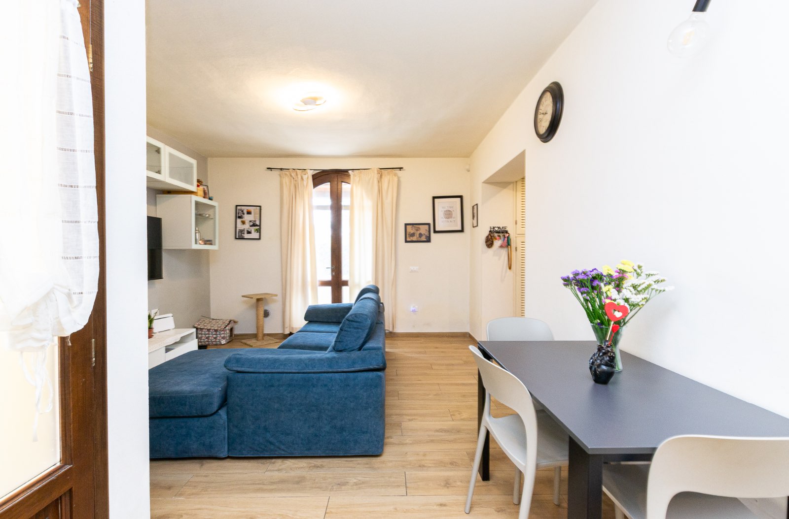 L’ingresso avviene attraverso una loggia ed il soggiorno, luminoso e accogliente, è arricchito da una porta finestra che si apre sul resede esterno privato, creando una piacevole continuità tra gli spazi interni ed esterni: ideale per momenti di convivialità.