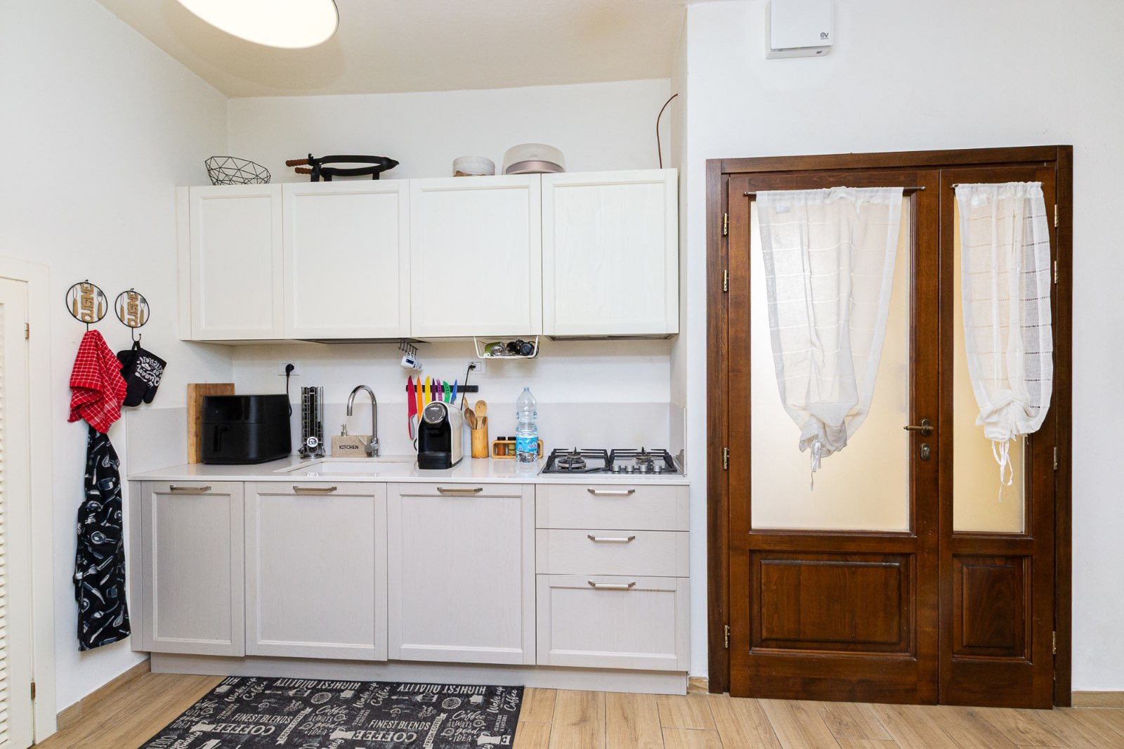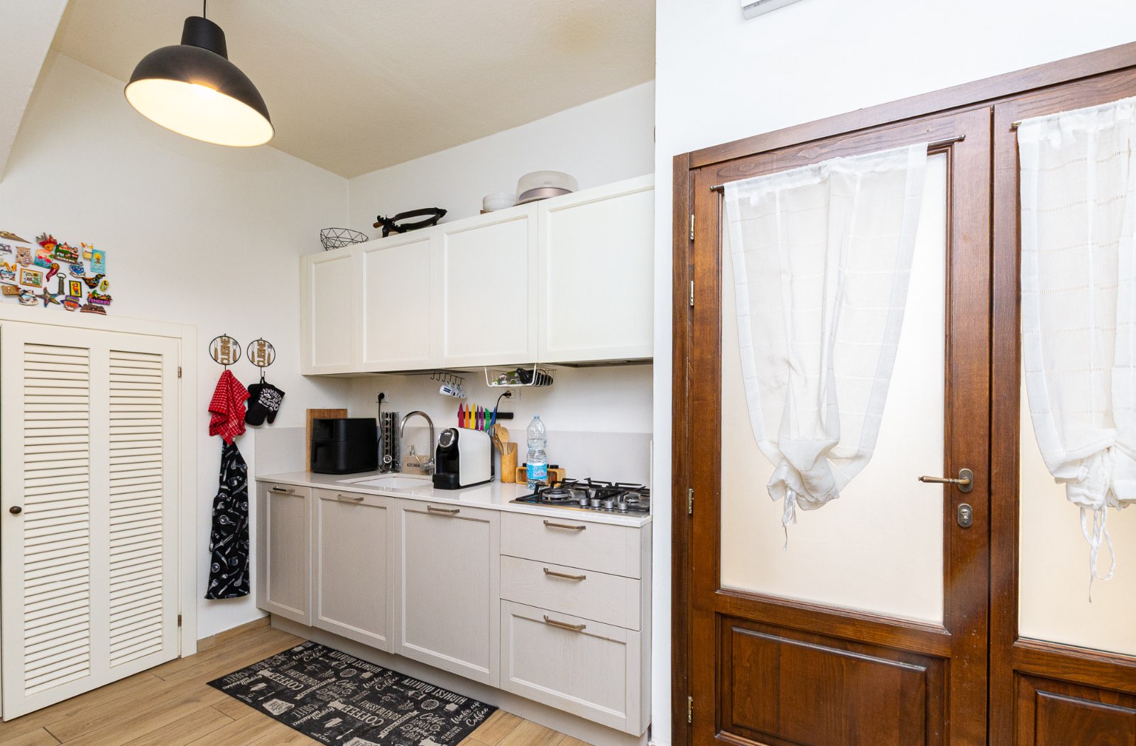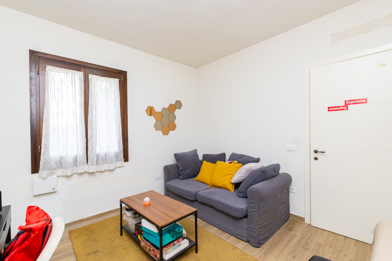 L’ingresso avviene attraverso una loggia ed il soggiorno, luminoso e accogliente, è arricchito da una porta finestra che si apre sul resede esterno privato, creando una piacevole continuità tra gli spazi interni ed esterni: ideale per momenti di convivialità.