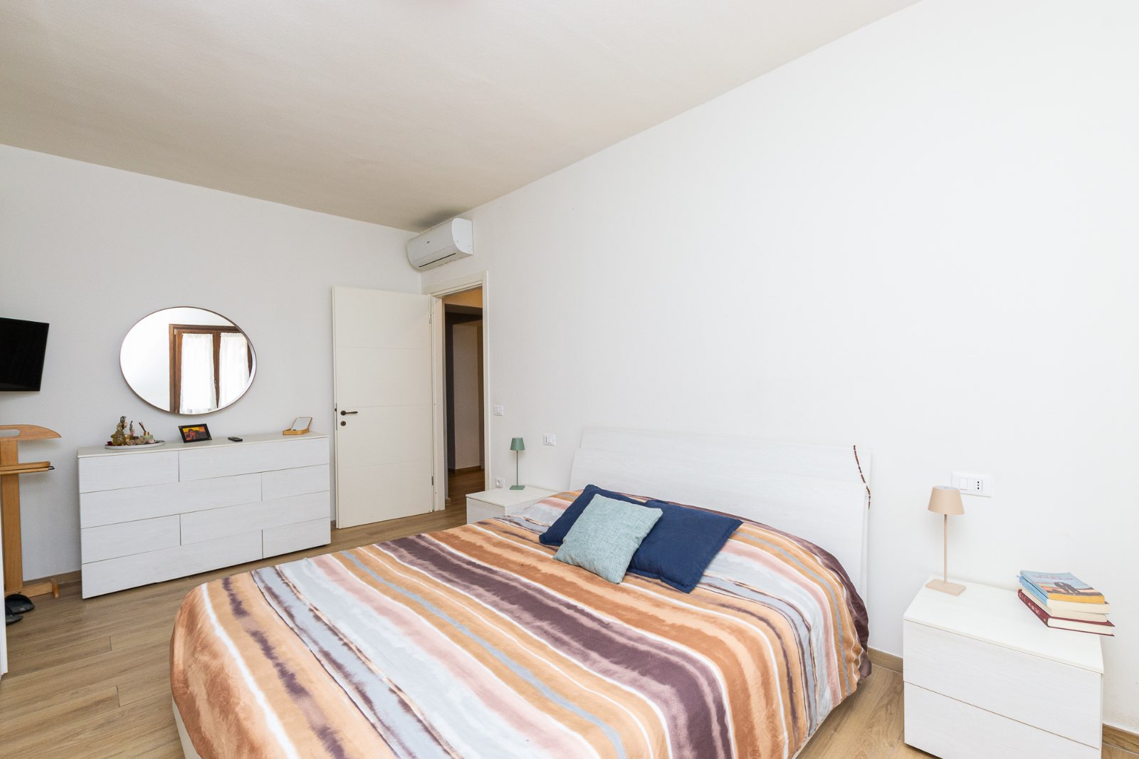 La zona notte offre una spaziosa camera matrimoniale, una camera doppia versatile e un elegante bagno finestrato con ampia doccia WALK-IN.