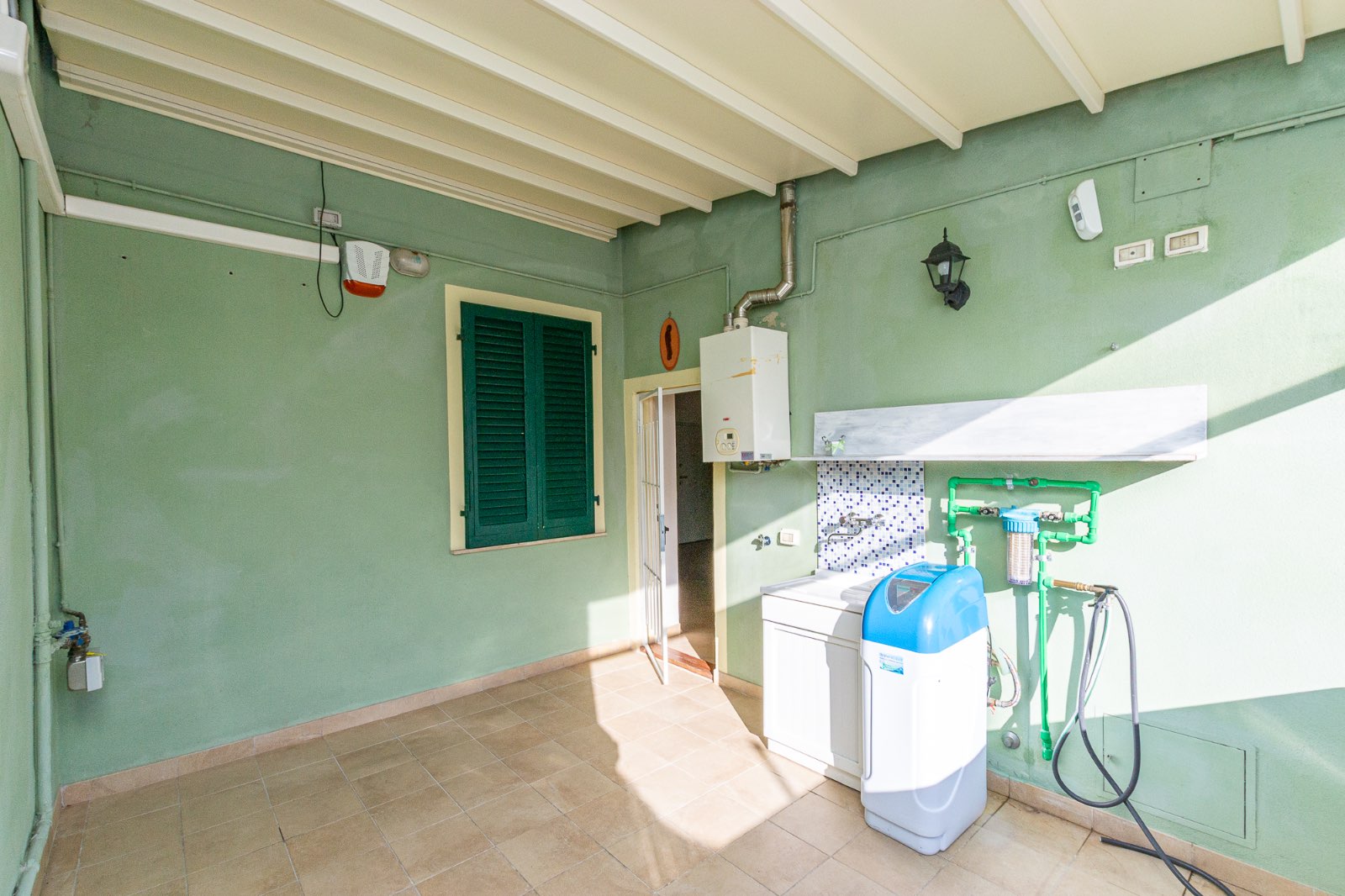 Completa la proprietà la grande terrazza abitabile completamente richiudibile tramite veranda elettrica corredata di zona lavanderia con caldaia ed addolcitore.