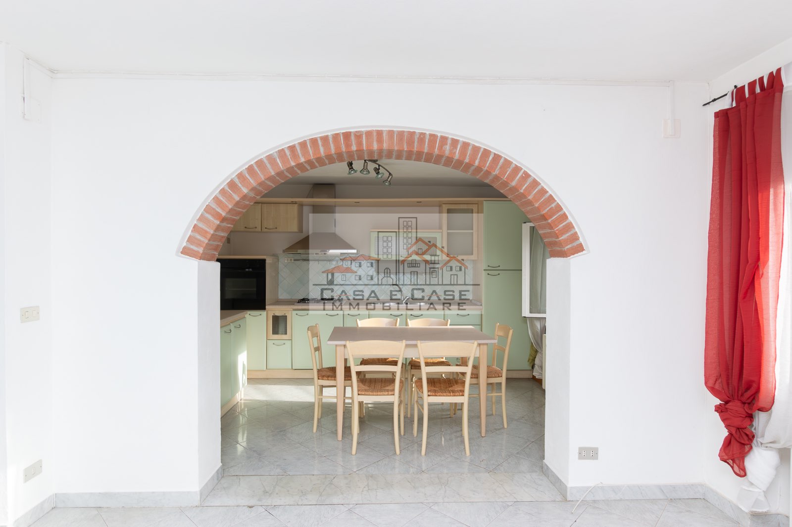 Il grazioso appartamento è composto da ingresso, luminosa zona giorno con cucina abitabile sepata da arco in muratura, ampia camera matrimoniale, cameretta/studio e spazioso bagno con doccia e finestra.
