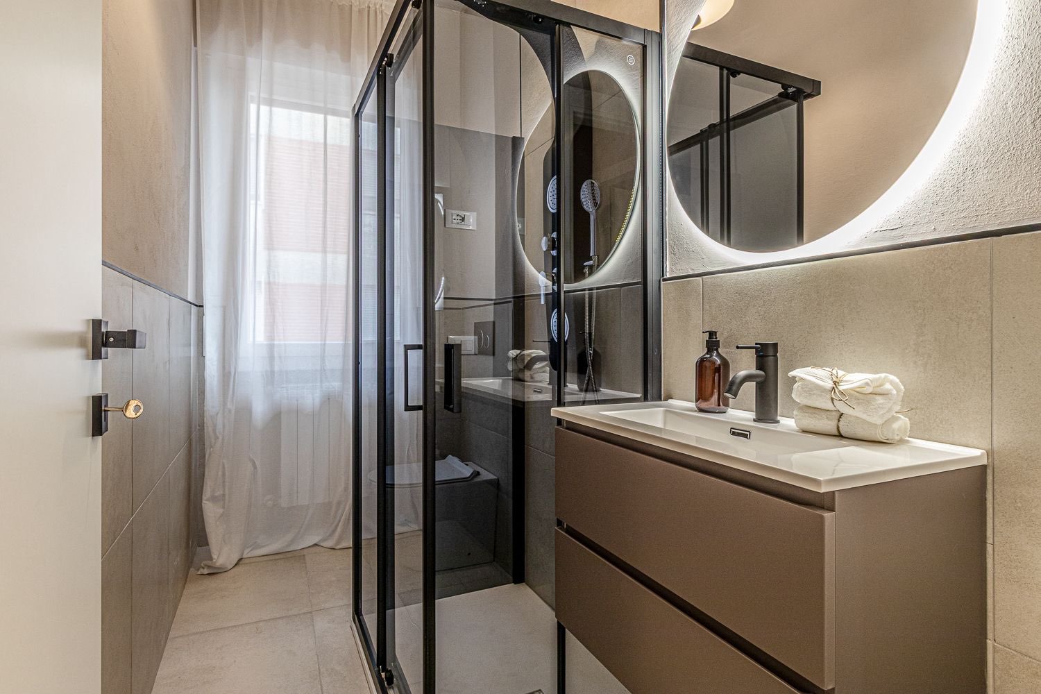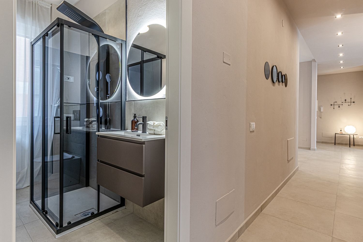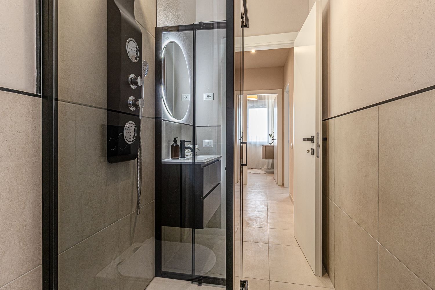 Completano gli spazi interni i 2 bagni, vero punto di forza dellʼappartamento: moderni, eleganti e appena ristrutturati, aggiungono fascino e valore a un’abitazione unica. Il bagno principale ti accoglie con una doccia ampia e raffinata, perfetta per i tuoi momenti di relax., l'altro, pensato come bagno di servizio, è pratico ma non rinuncia allo stile, diventando un alleato prezioso per la vita quotidiana.