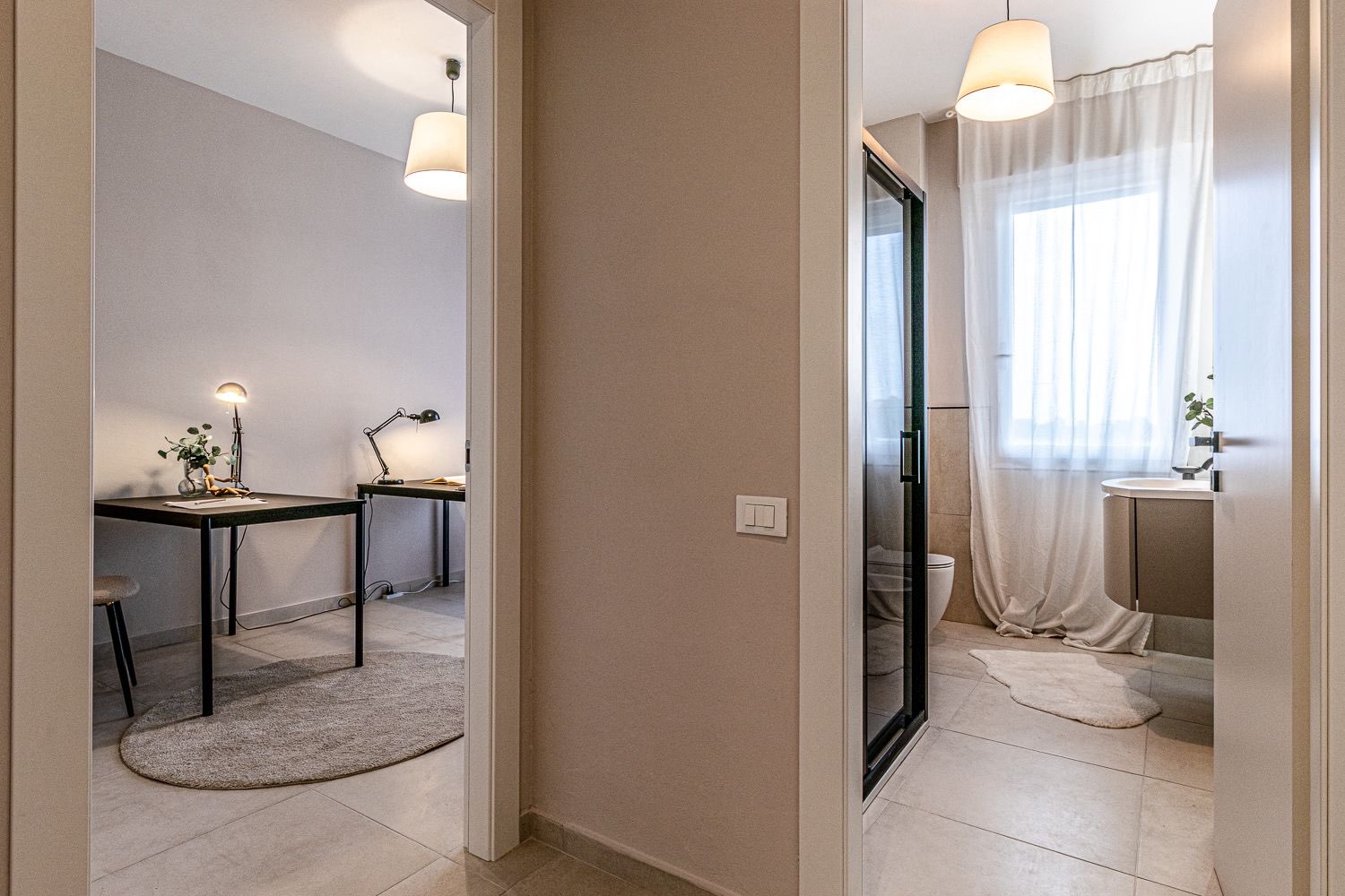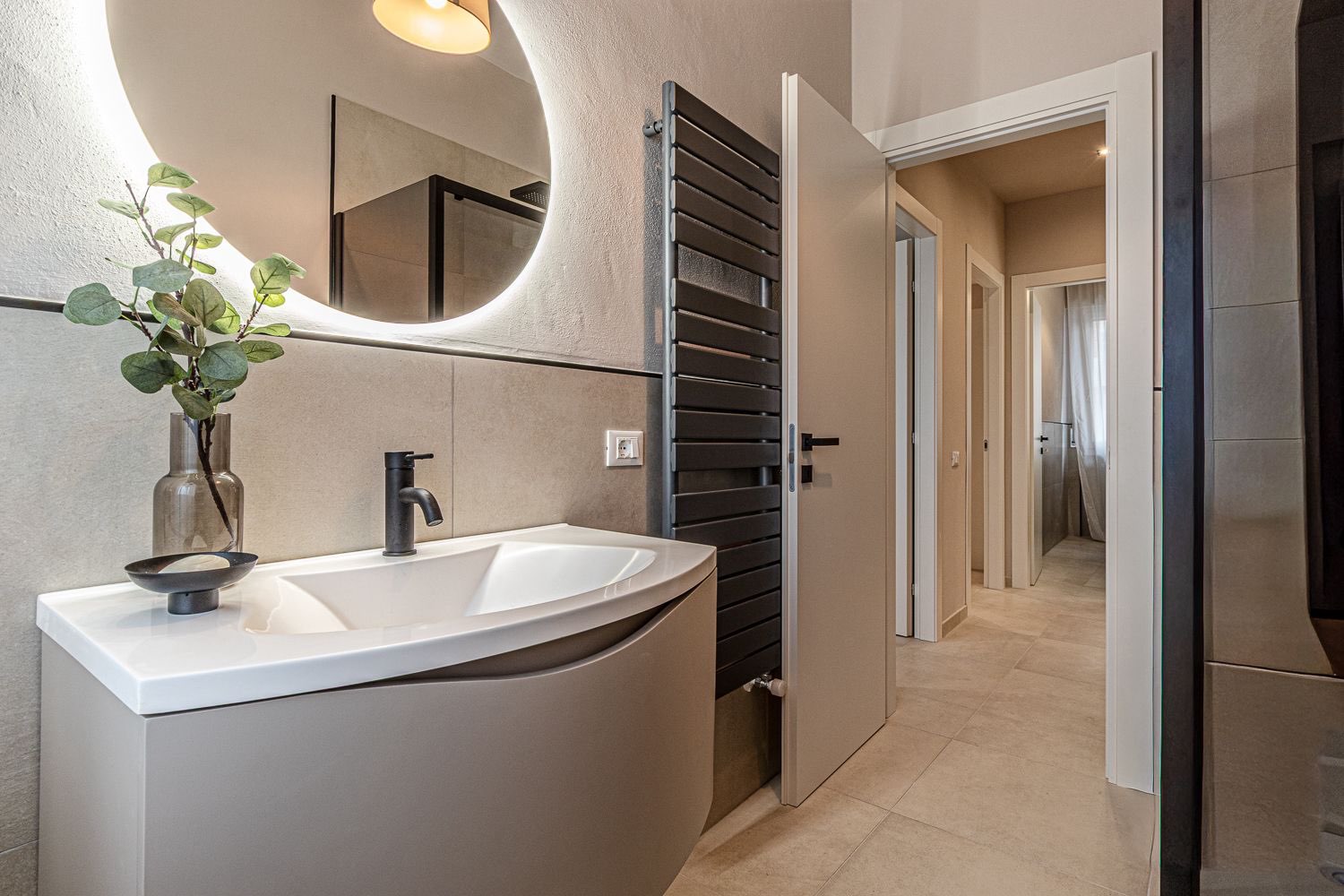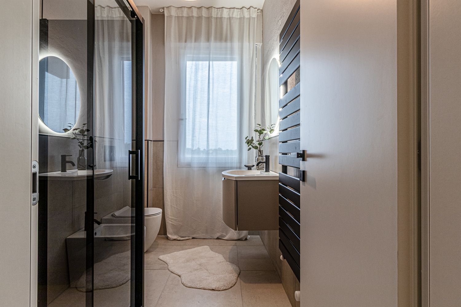 Completano gli spazi interni i 2 bagni, vero punto di forza dellʼappartamento: moderni, eleganti e appena ristrutturati, aggiungono fascino e valore a un’abitazione unica. Il bagno principale ti accoglie con una doccia ampia e raffinata, perfetta per i tuoi momenti di relax., l'altro, pensato come bagno di servizio, è pratico ma non rinuncia allo stile, diventando un alleato prezioso per la vita quotidiana.