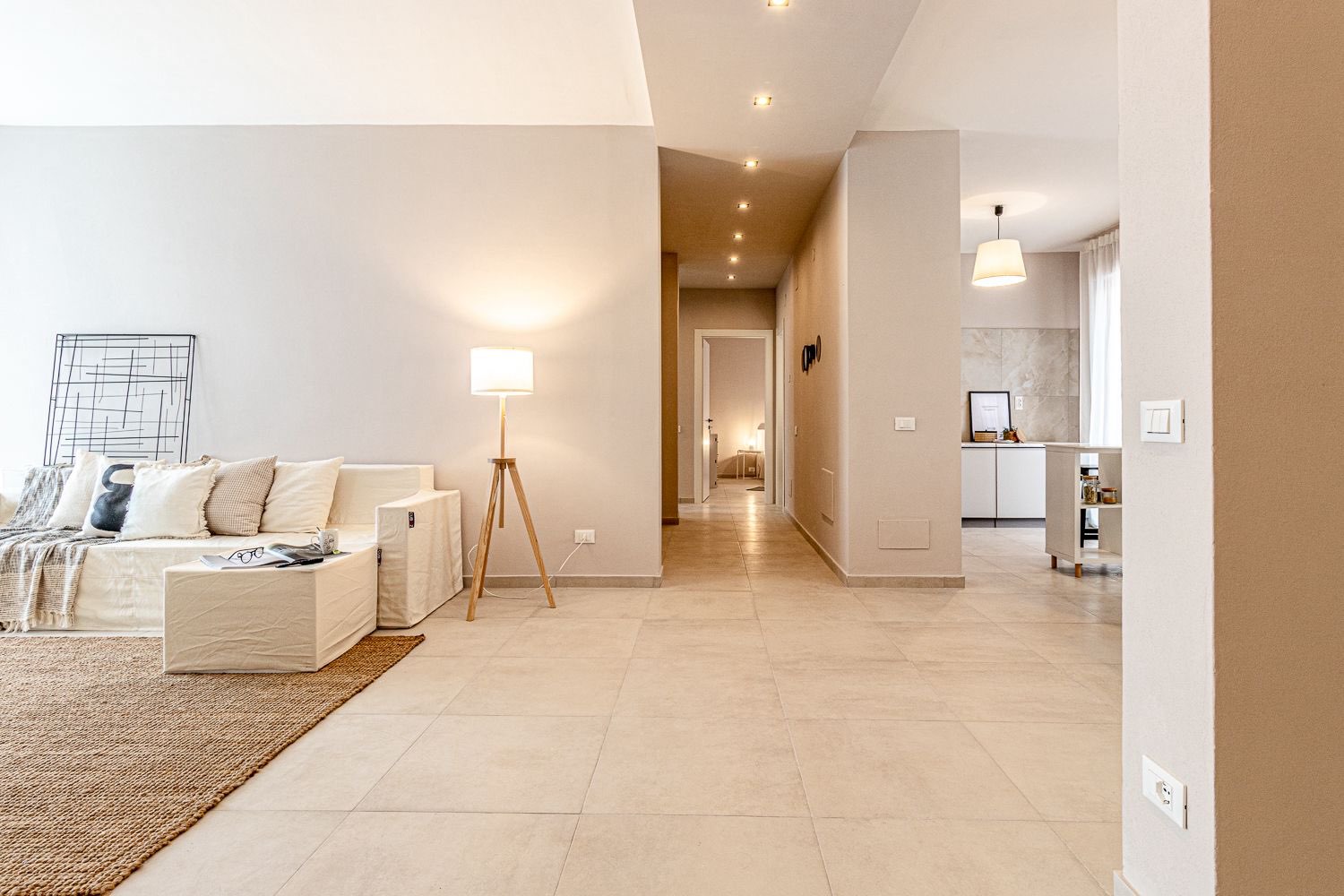 Il pavimento in gres porcellanato corre uniforme, il pensiero con cui è stata concepita l’illuminazione garantisce un tocco contemporaneo e armonioso. Gli infissi, rinnovati con una verniciatura interna bianca, mantengono carattere e luminosità, mentre il riscaldamento con caldaia esterna a condensazione garantisce efficienza e comfort in tutte le stagioni.